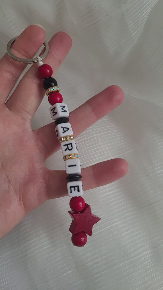 Schlüsselanhänger mit Namen Sternchen weinrot gold glitzer