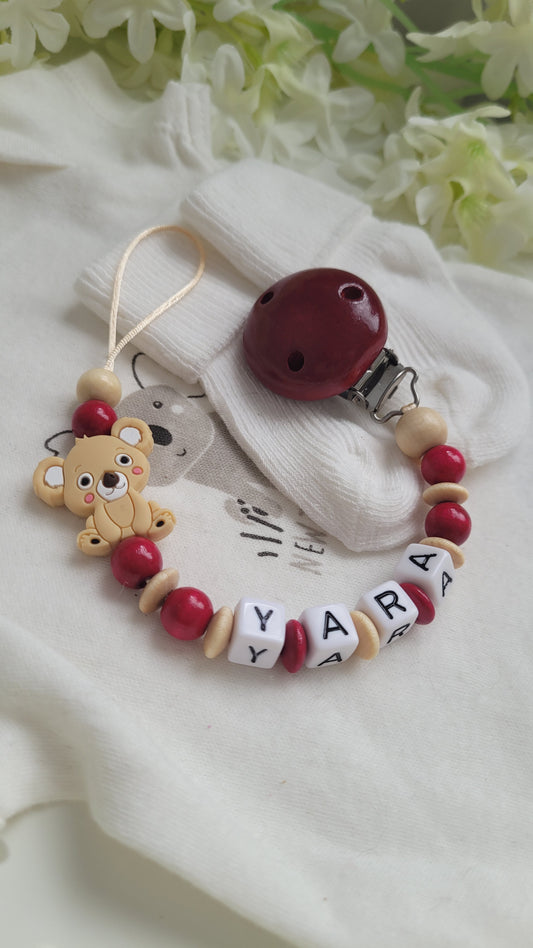Schnullerkette mit Namen für Mädchen Koala bordaux holz