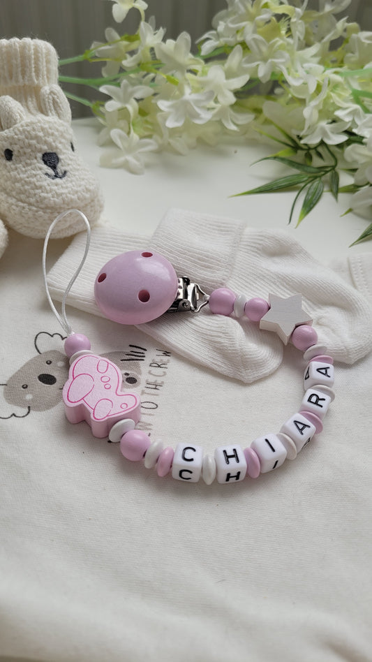 Schnullerkette mit Namen für Mädchen Elefant rosa