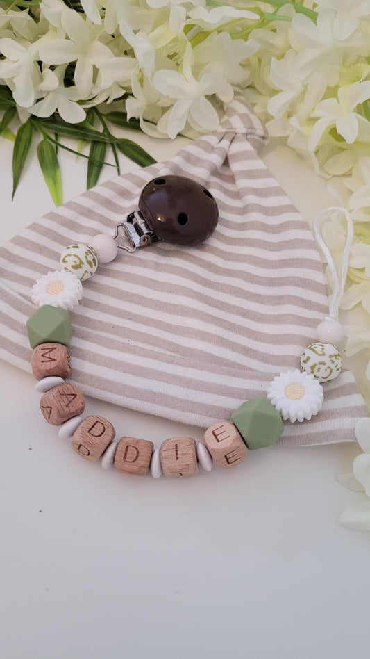 Schnullerkette *Gänseblümchen* leo grün braun weiss