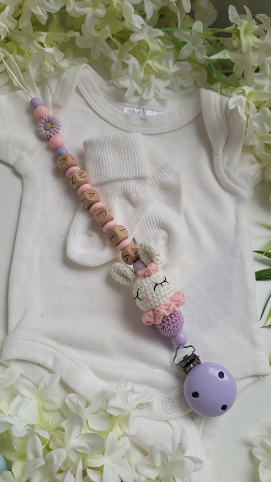 Schnullerkette mit Namen für Mädchen * Hase* flieder