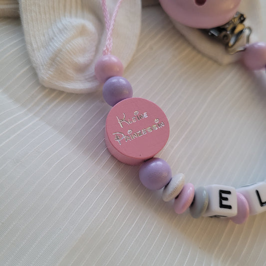 Schnullerkette mit Namen für Mädchen Herz & Kleine Prinzessin rosa weiß grau flieder