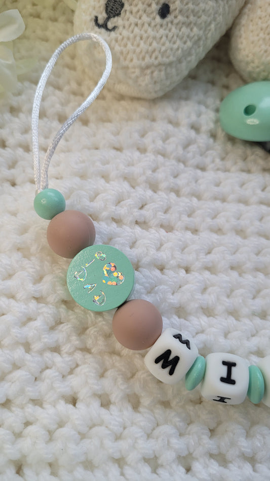 Schnullerkette mit Namen für Jungen Fuchs grün beige