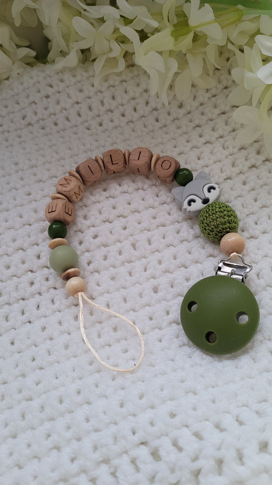 Jede Kette wirdindividuell mit dem Namen deines Baby´s gefertigt und hilft dabei, den Schnuller immer griffbereit zu halten - ohne das er verloren geht.