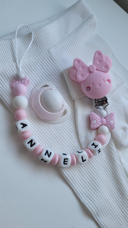 Schnullerkette mit Namen für Mädchen Maus rosa weiss