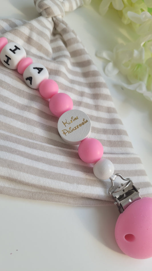 Schnullerkette mit Namen für Mädchen Pink Giraffe kleine Prinzessin
