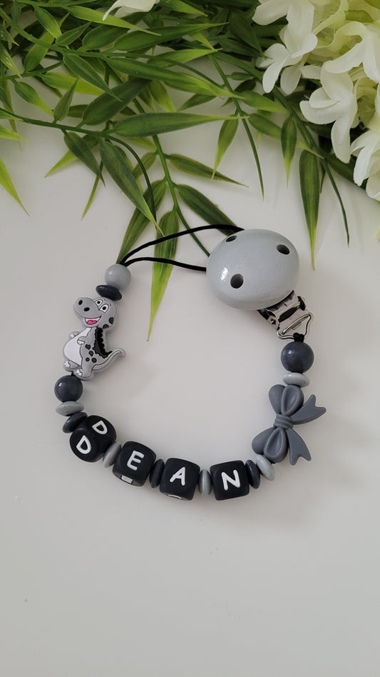 Kinderwagenkette & Schnullerkette *Dino* grau