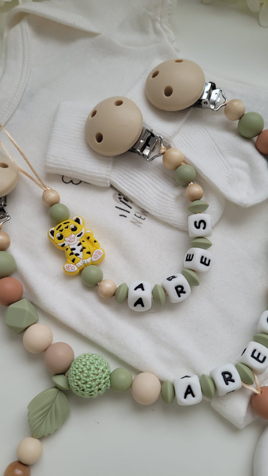 Kinderwagenkette & Schnullerkette *Tiger* grün