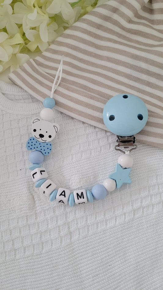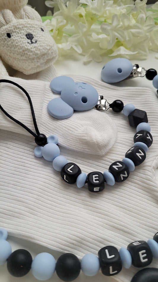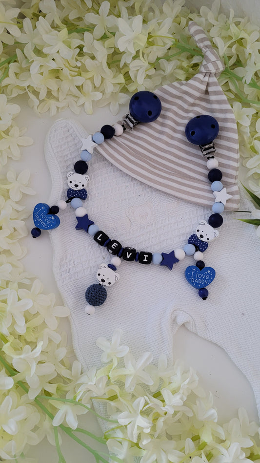 Schnullerketten & Kinderwagenketten mit Namen für Jungen - personalisierte Accessoires für Babys