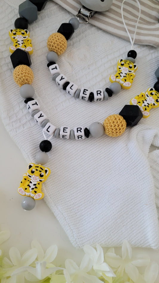 Kinderwagenkette & Schnullerkette * Tiger* grau