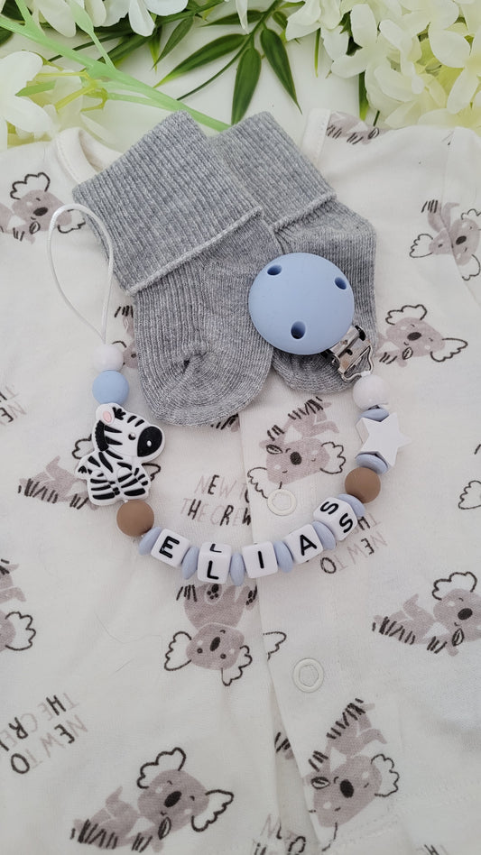 Kinderwagenkette & Schnullerkette * Zebra* blau grau