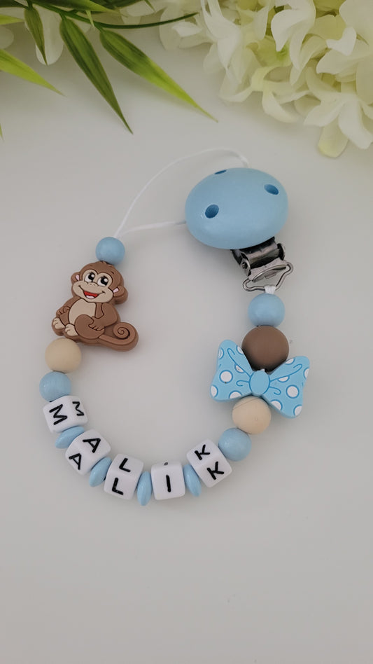 Kinderwagenkette & Schnullerkette *Äffchen* hellblau beige