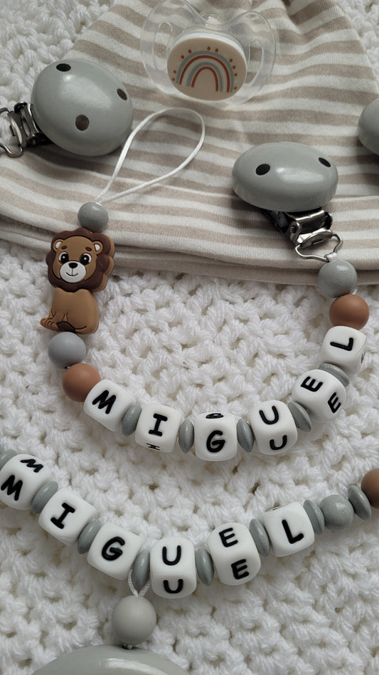Kinderwagenkette & Schnullerkette * Löwe* grau braun