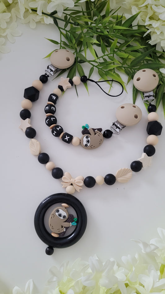 Kinderwagenkette & Schnullerkette *Faultier* schwarz beige