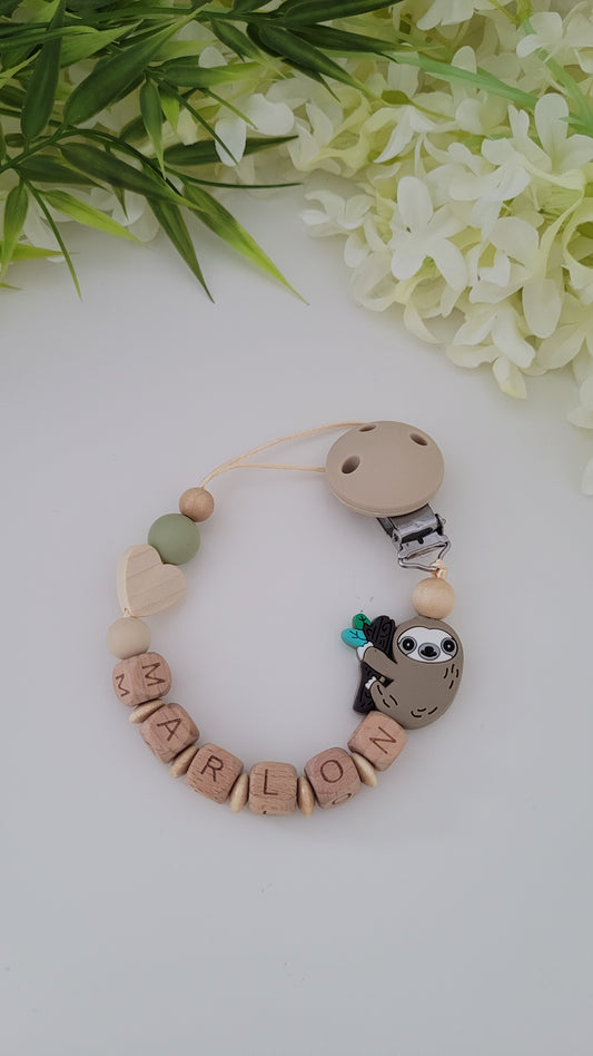 Kinderwagenkette & Schnullerkette *Faultier* grün beige