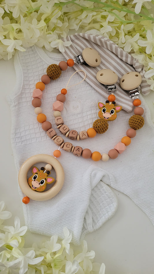 Kinderwagenkette & Schnullerkette * Giraffe* orange braun