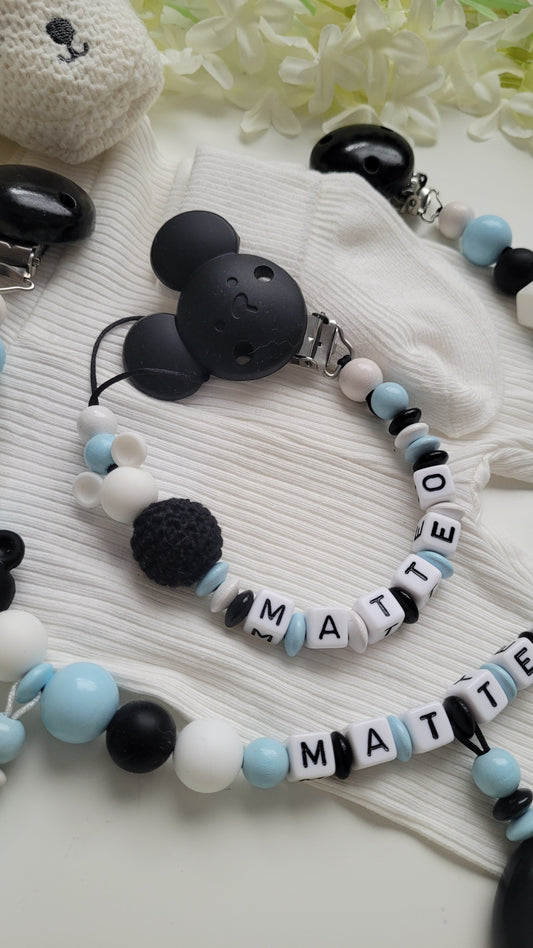 Kinderwagenkette & Schnullerkette * Maus* blau schwarz weiß