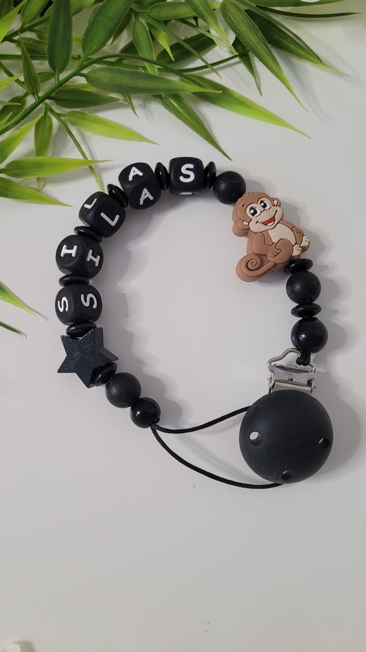 Kinderwagenkette & Schnullerkette *Äffchen* Black