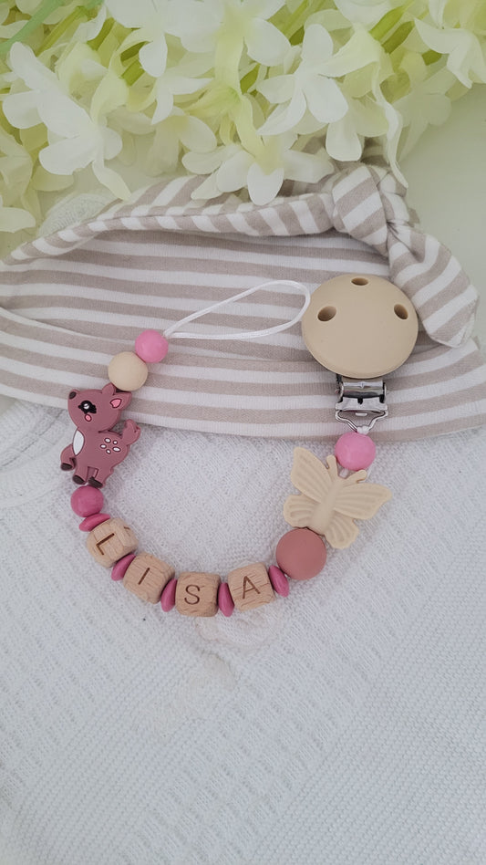 Kinderwagenkette & Schnullerkette * Rehkitz* rosepink