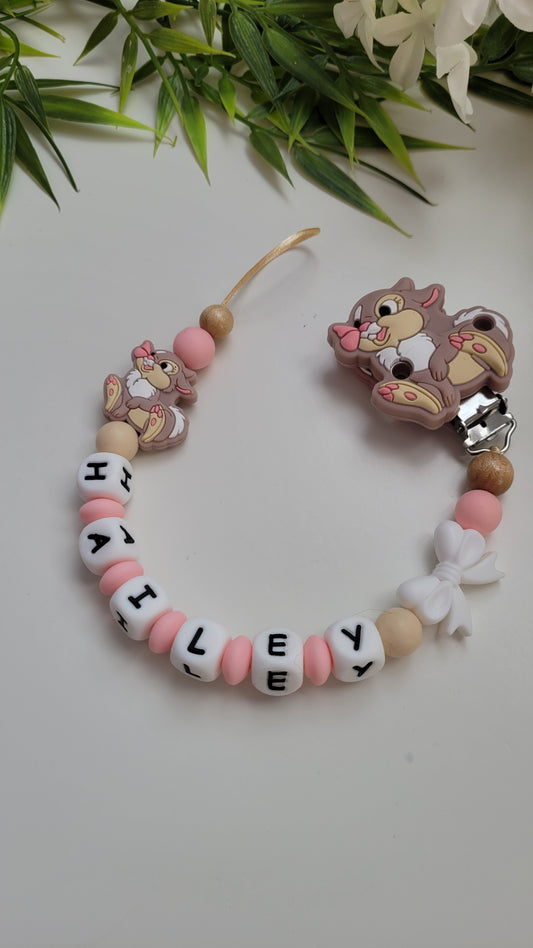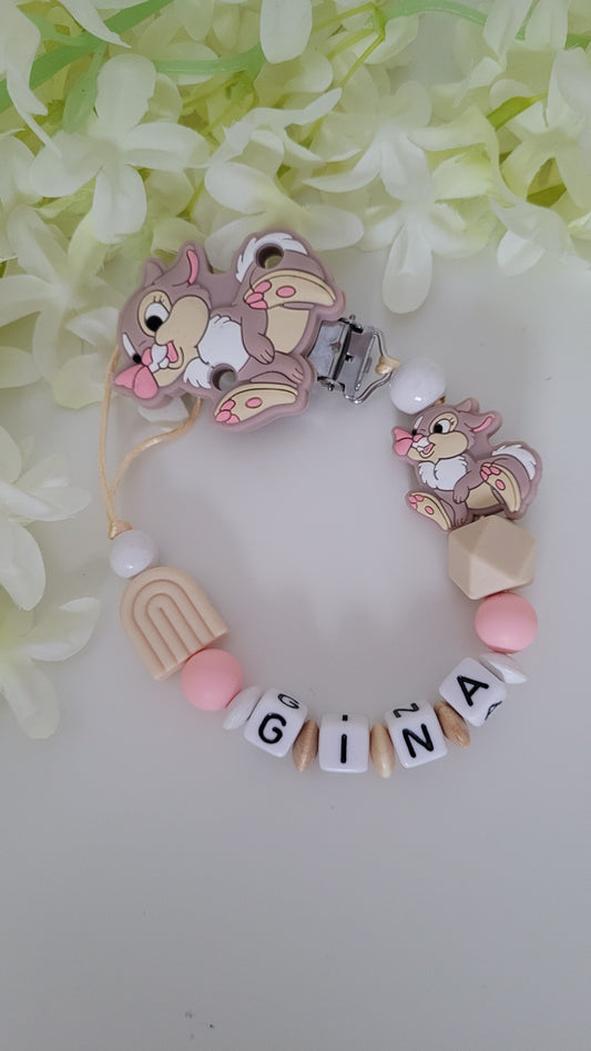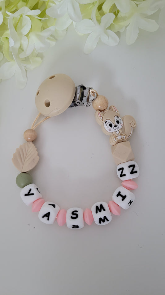Kinderwagenkette & Schnullerkette *Eichhörnchen* rosa beige