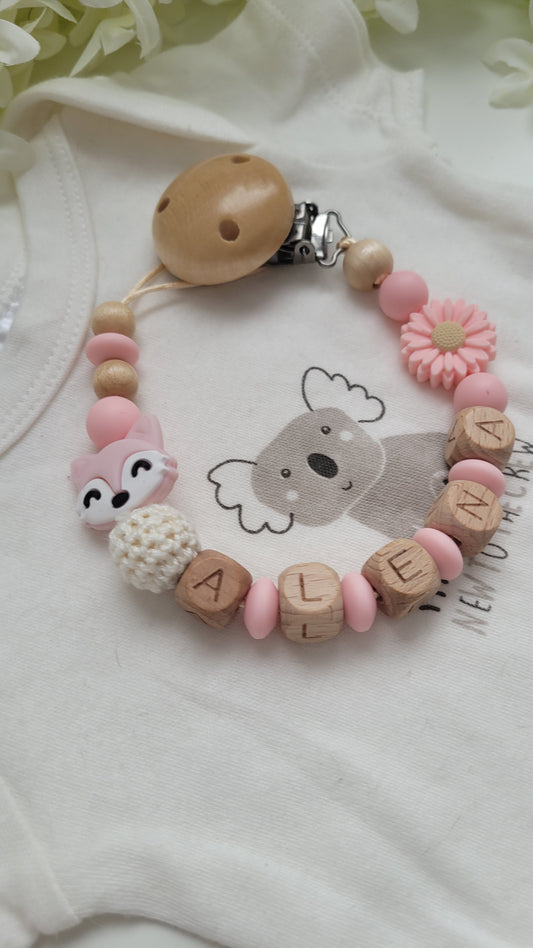 Entdecke handgemachte Schnuller - und Kinderwagenketten mit Namen für Mädchen.