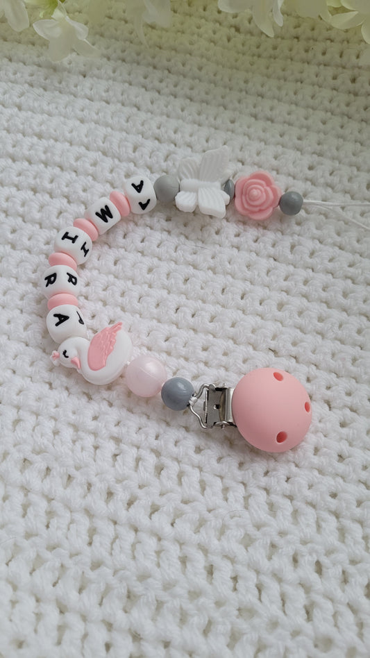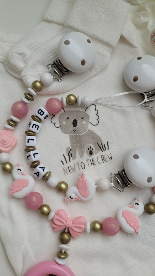 Kinderwagenkette & Schnullerkette *Schwan Prinzessin* rosegold