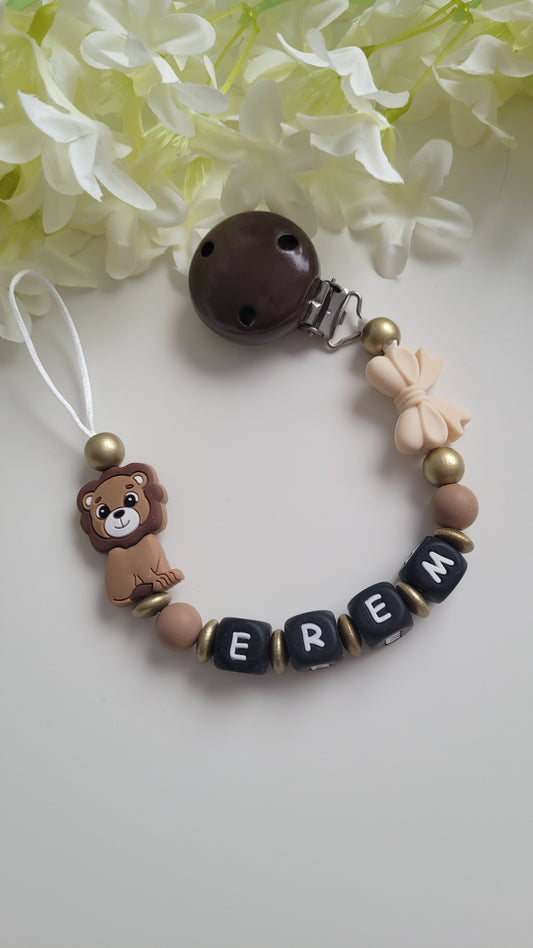 Kinderwagenkette & Schnullerkette * Löwe* gold braun