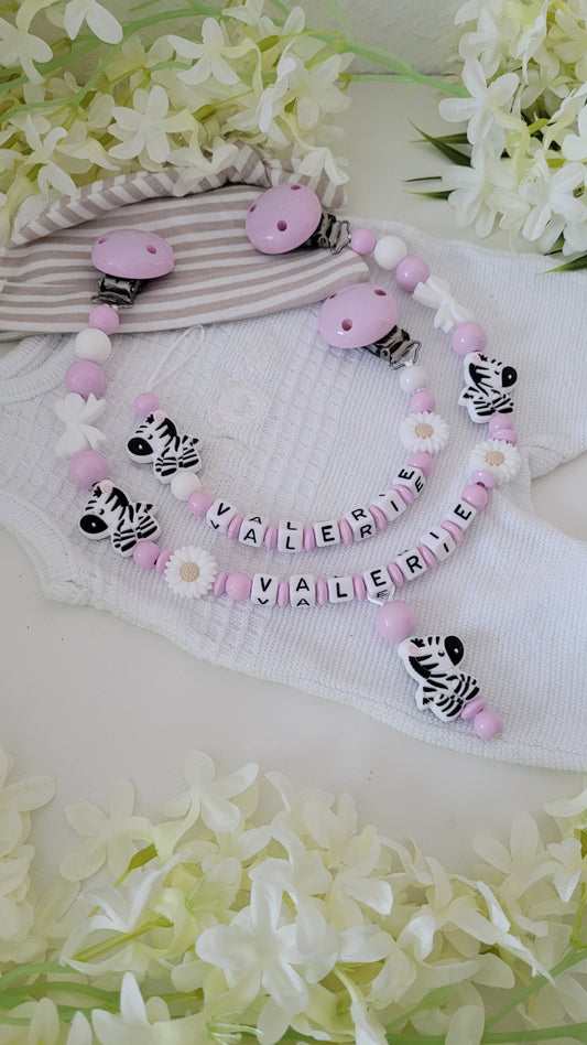 Kinderwagenkette & Schnullerkette * Zebra* Rosa weiss