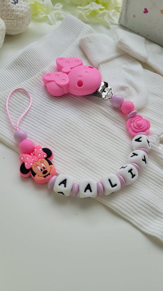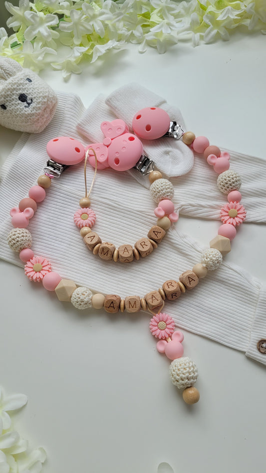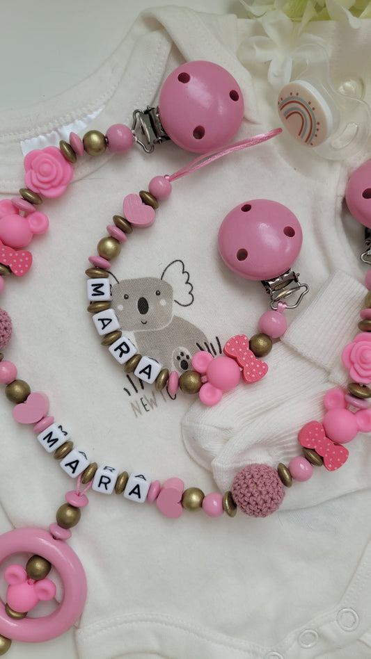 Kinderwagenkette & Schnullerkette mit Namen *Maus* pink rosa