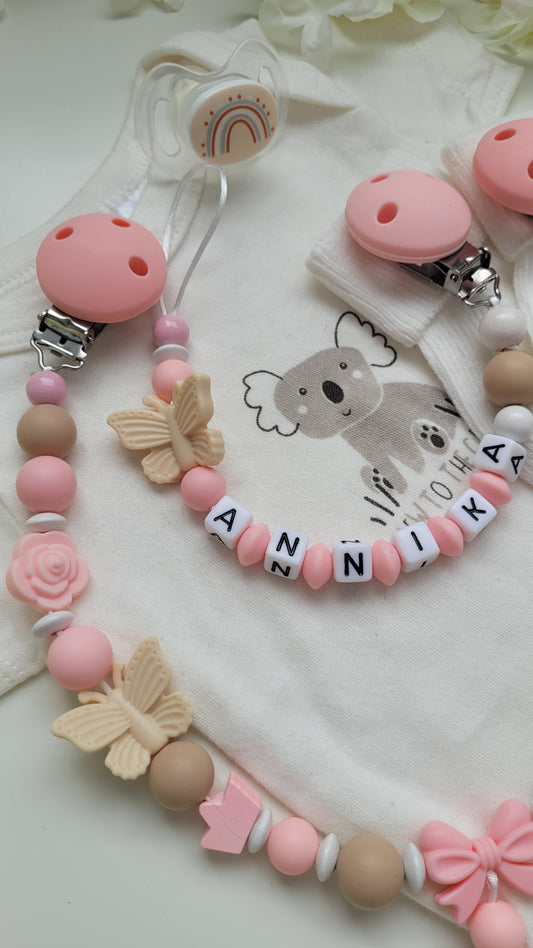 Finde jetzt die perfekte Schnullerkette mit Namen für dein Baby Mädchen und bestelle einfach und bequem online!