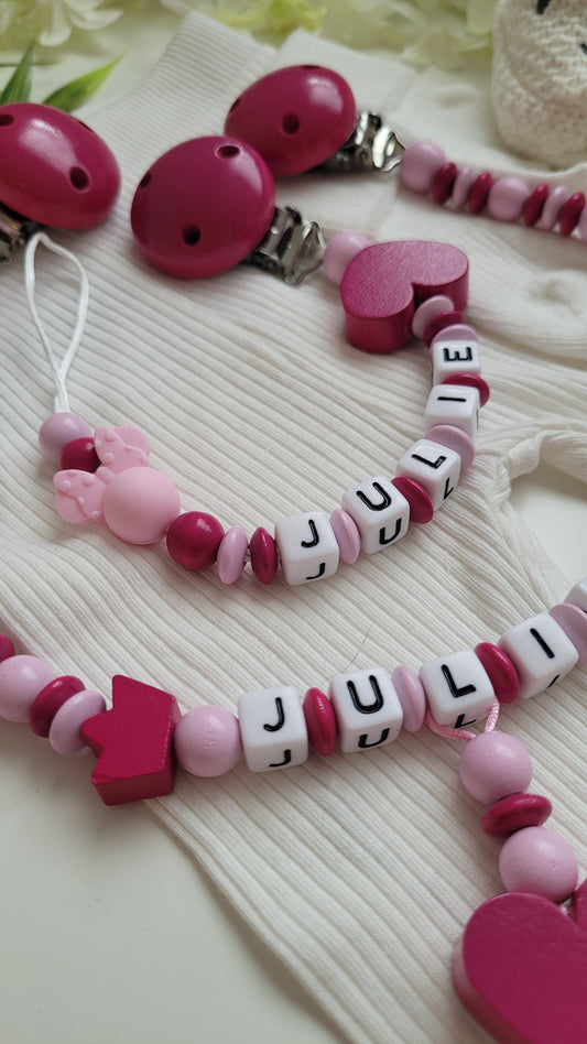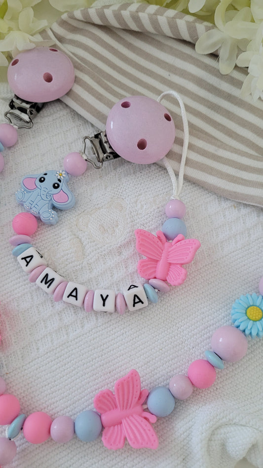 Schnullerketten & Kinderwagenketten mit Namen für Mädchen - personalisierte Accessoires für Babys