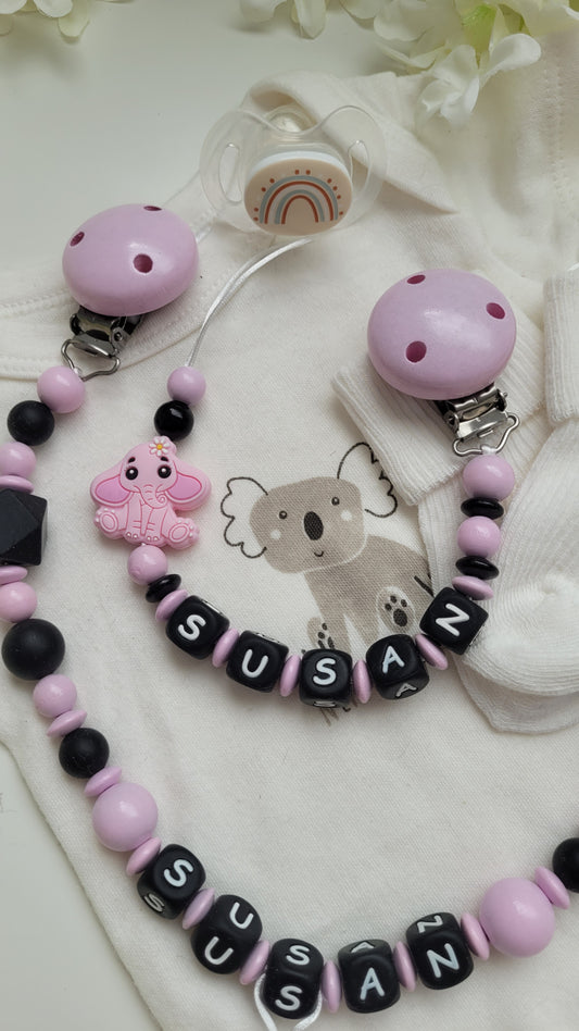 Kinderwagenkette & Schnullerkette *Elefant* rosa