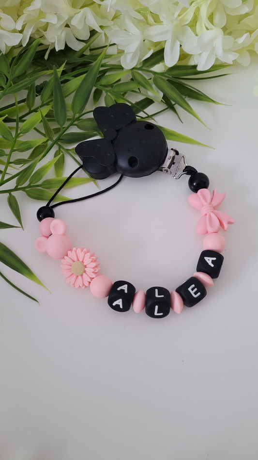 Kinderwagenkette & Schnullerkette *Minnie* rosa schwarz