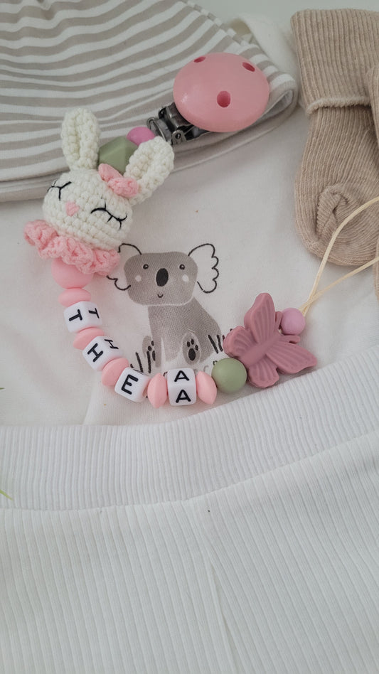 Kinderwagenkette & Schnullerkette Häschen peach green