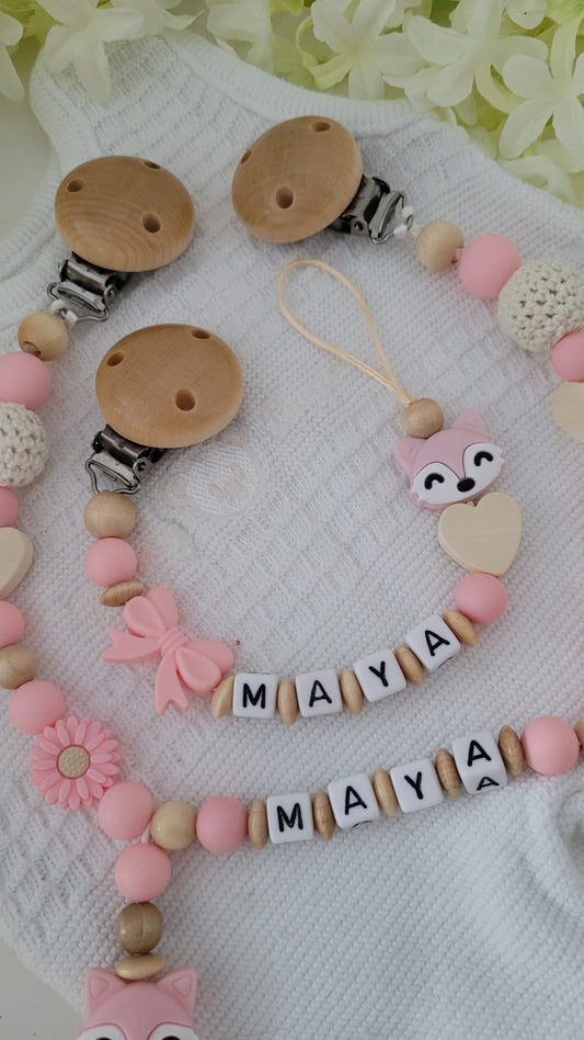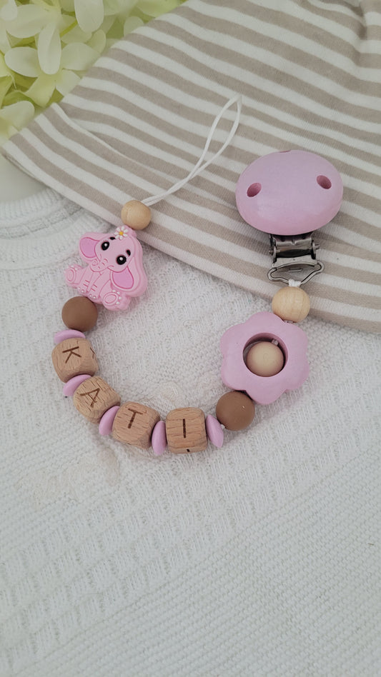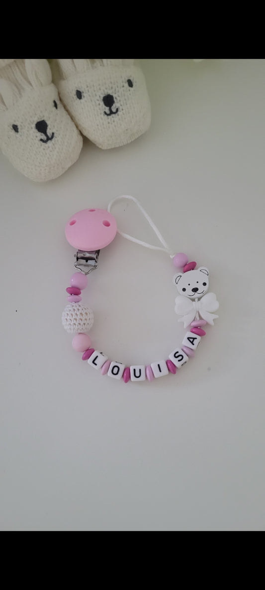 Entdecke handgemachte Schnuller - und Kinderwagenketten mit Namen für Mädchen.