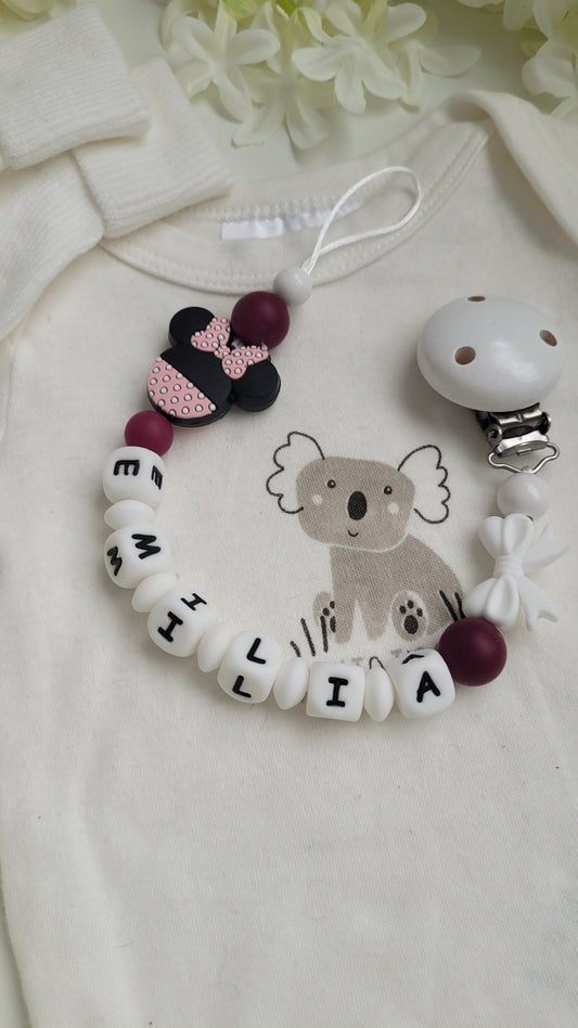 Kinderwagenkette & Schnullerkette mit Namen Minnie Maus kleine Prinzessin