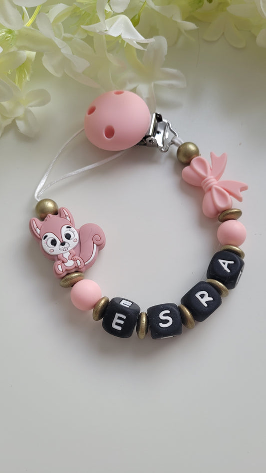 Kinderwagenkette & Schnullerkette * Eichhörnchen* gold rosa