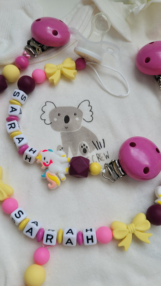 Kinderwagenkette & Schnullerkette Einhorn Regenbogen