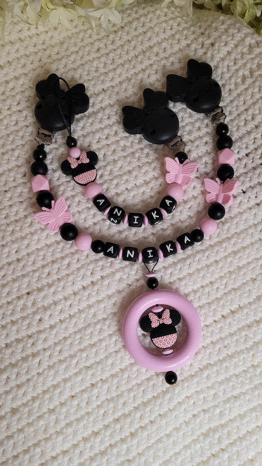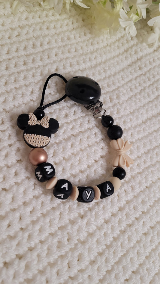 Kinderwagenkette & Schnullerkette mit Namen Minnie Rose Black