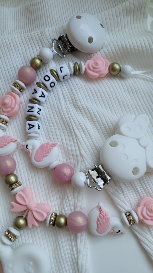 Kinderwagenkette & Schnullerkette *Schwan Prinzessin* rose apricot gold