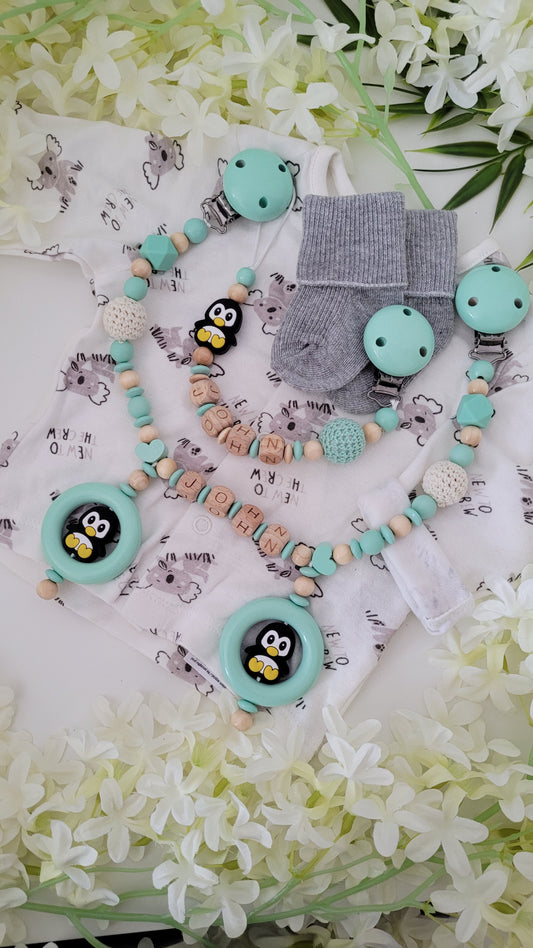 Kinderwagenkette & Schnullerkette "Little Pinguin Star"