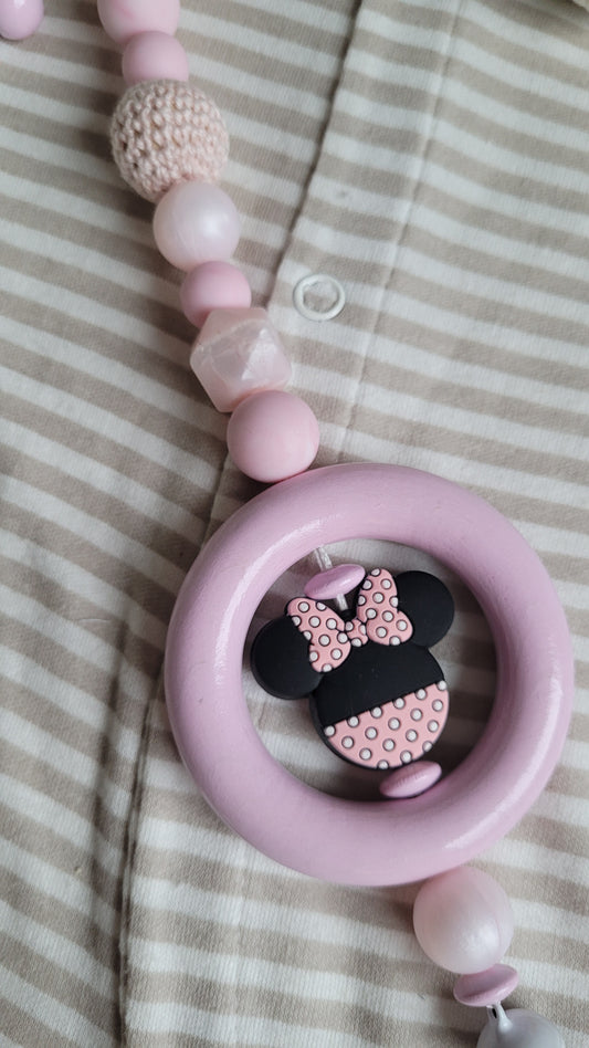 Spielanhänger für Maxicosi & Wiege Minnie Maus Rosa marmoriert Schimmer Perlmutt