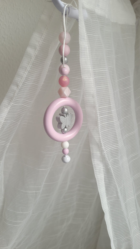 Spielanhänger für Maxicosi & Wiege Schmetterling Rosa marmoriert Schimmer Perlmutt silber