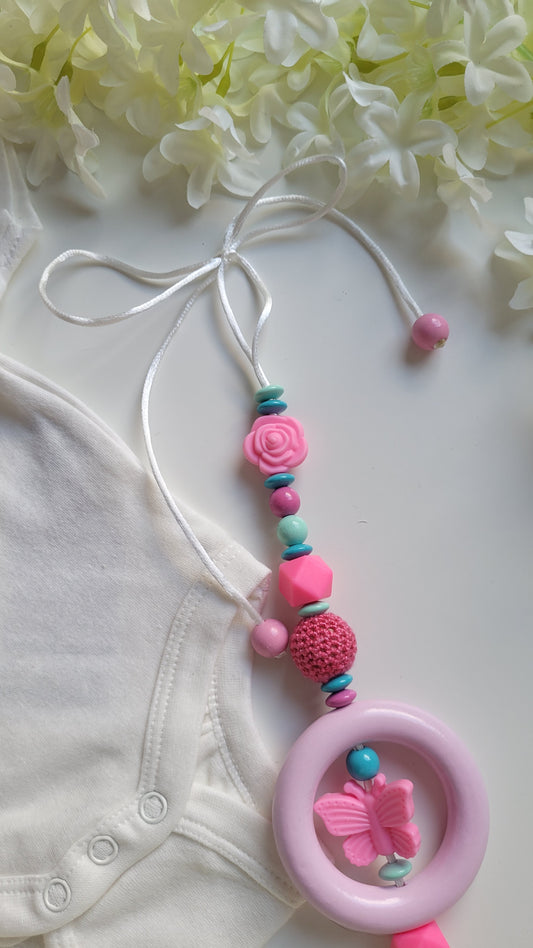 Spielanhänger für Maxicosi & Wiege Schmetterling Rosen türkis mint pink