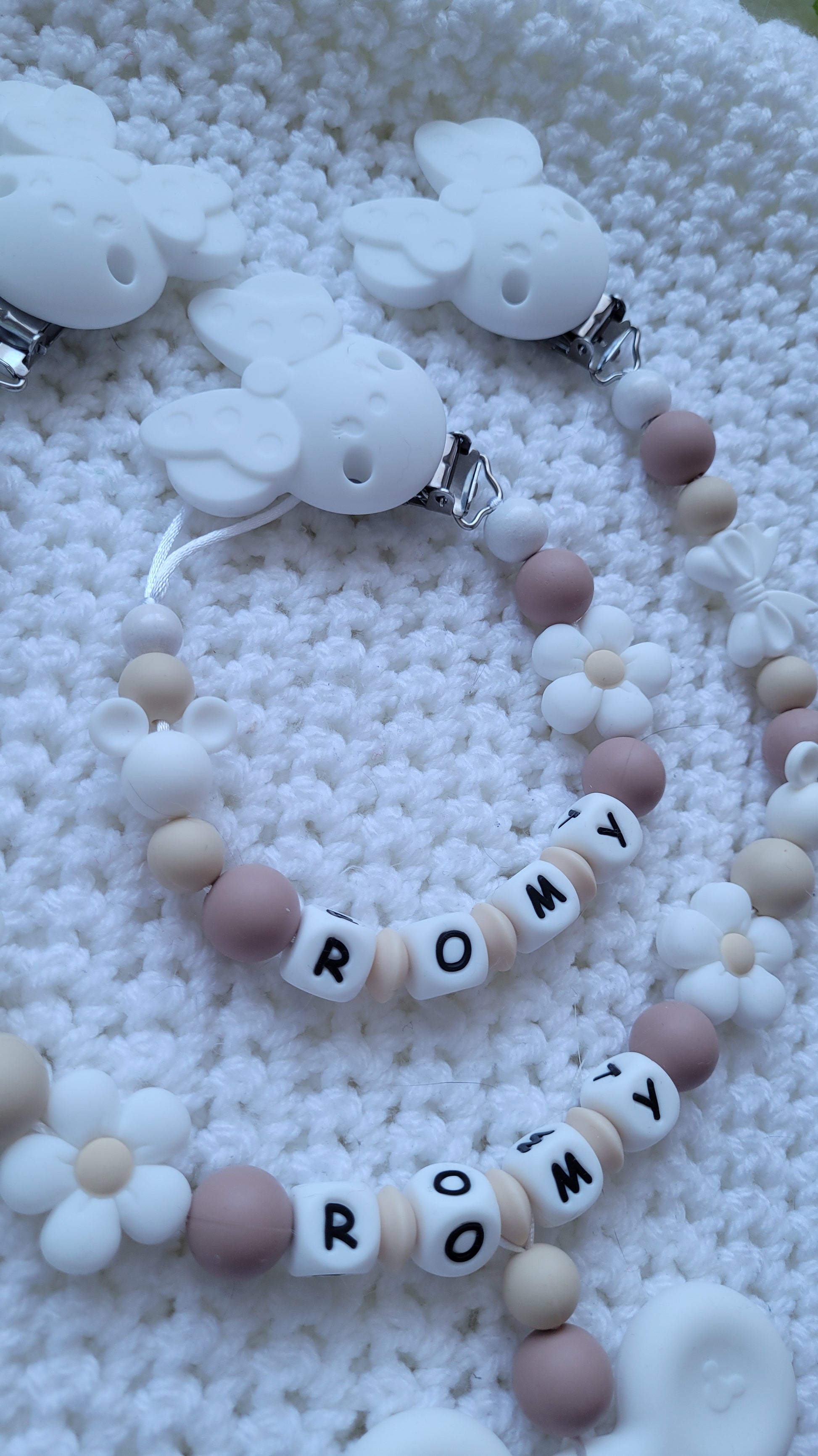 Traumhaftes Set aus Schnullerkette und passender Kinderwagenkette