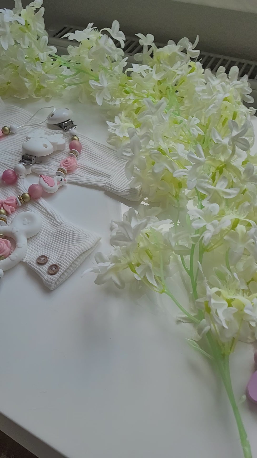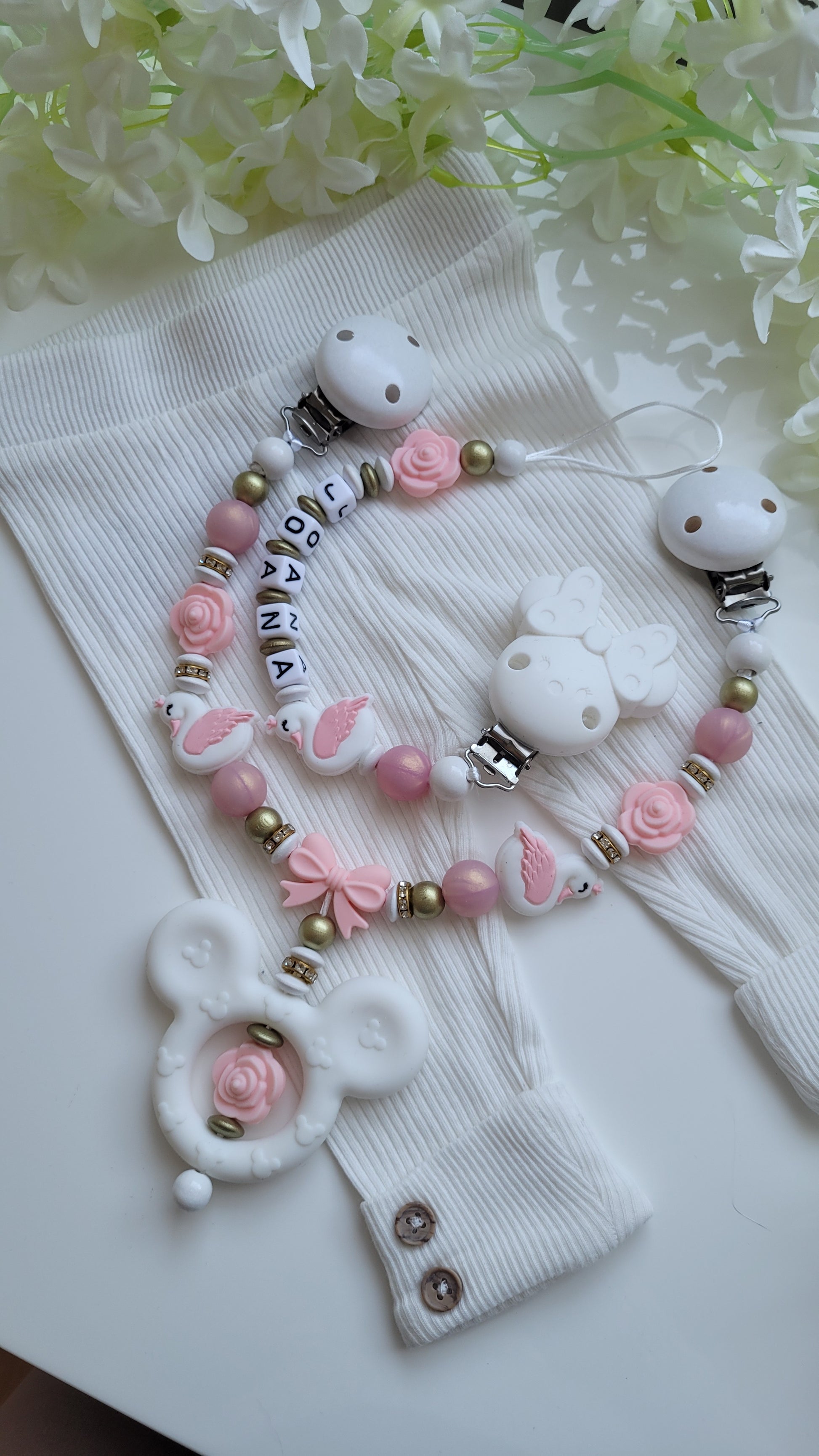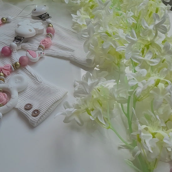 Traumhaftes Set aus Schnullerkette und passender Kinderwagenkette