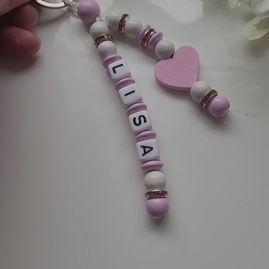 Schlüsselanhänger mit Namen rosa weiss Strass