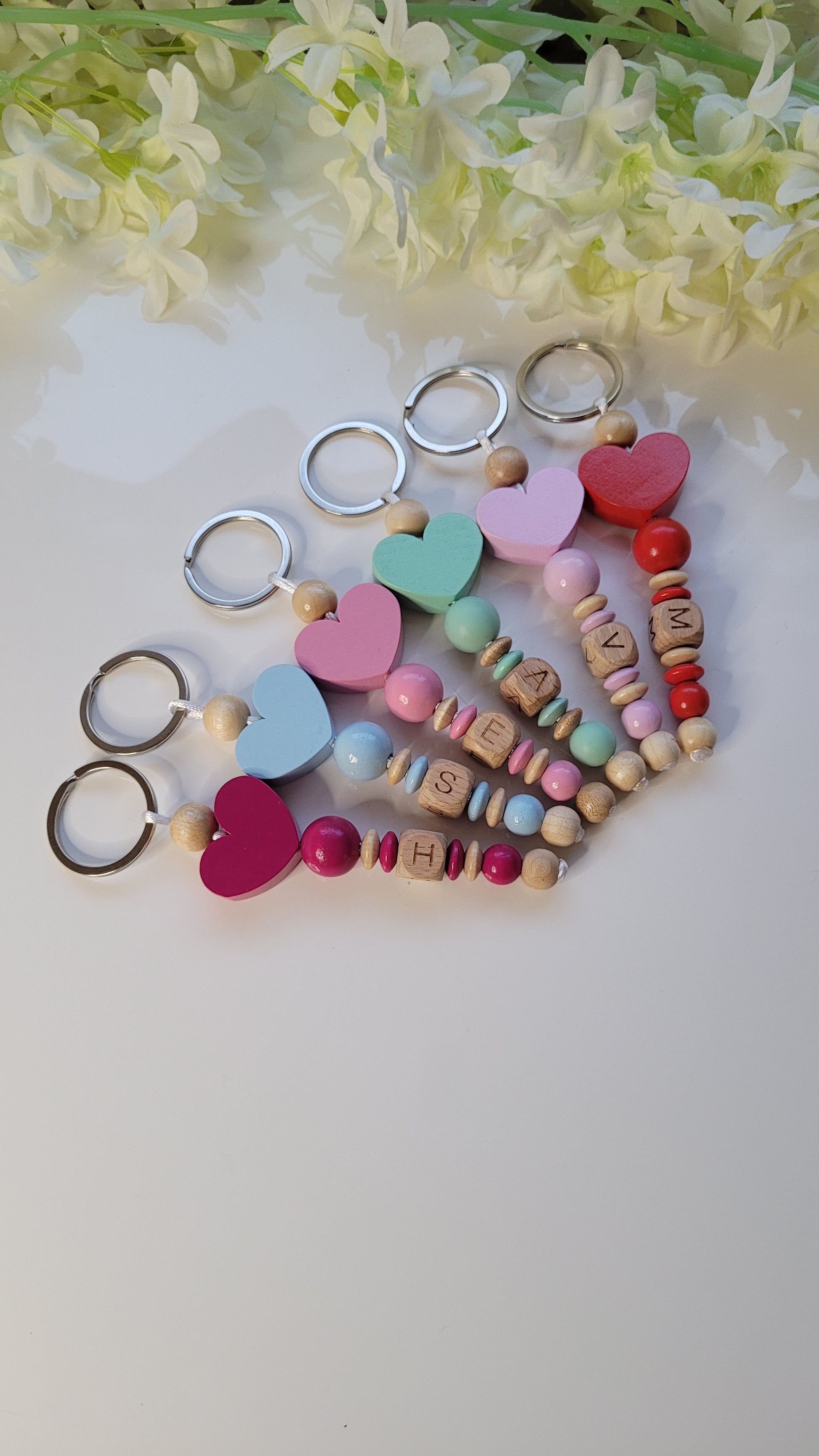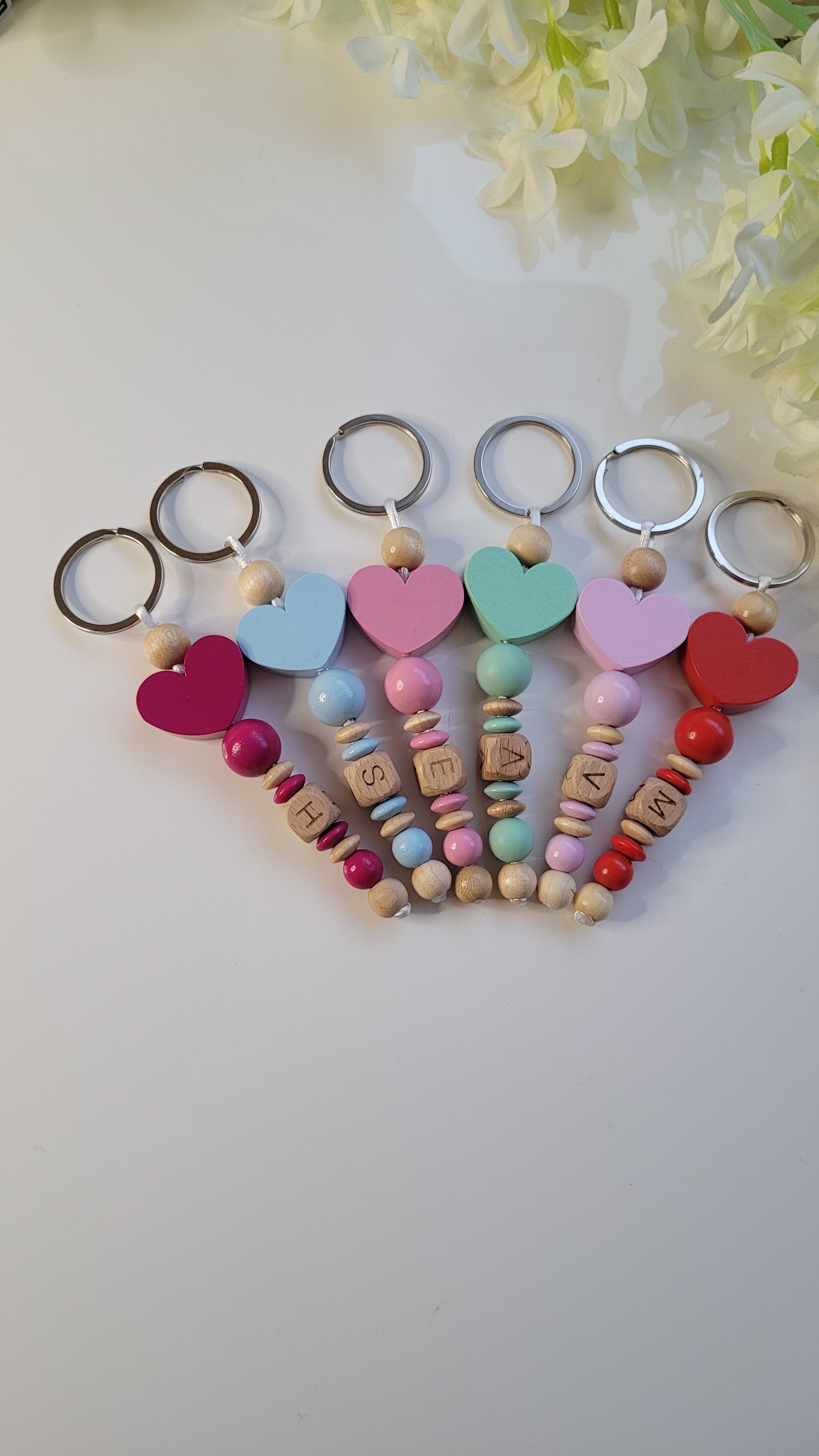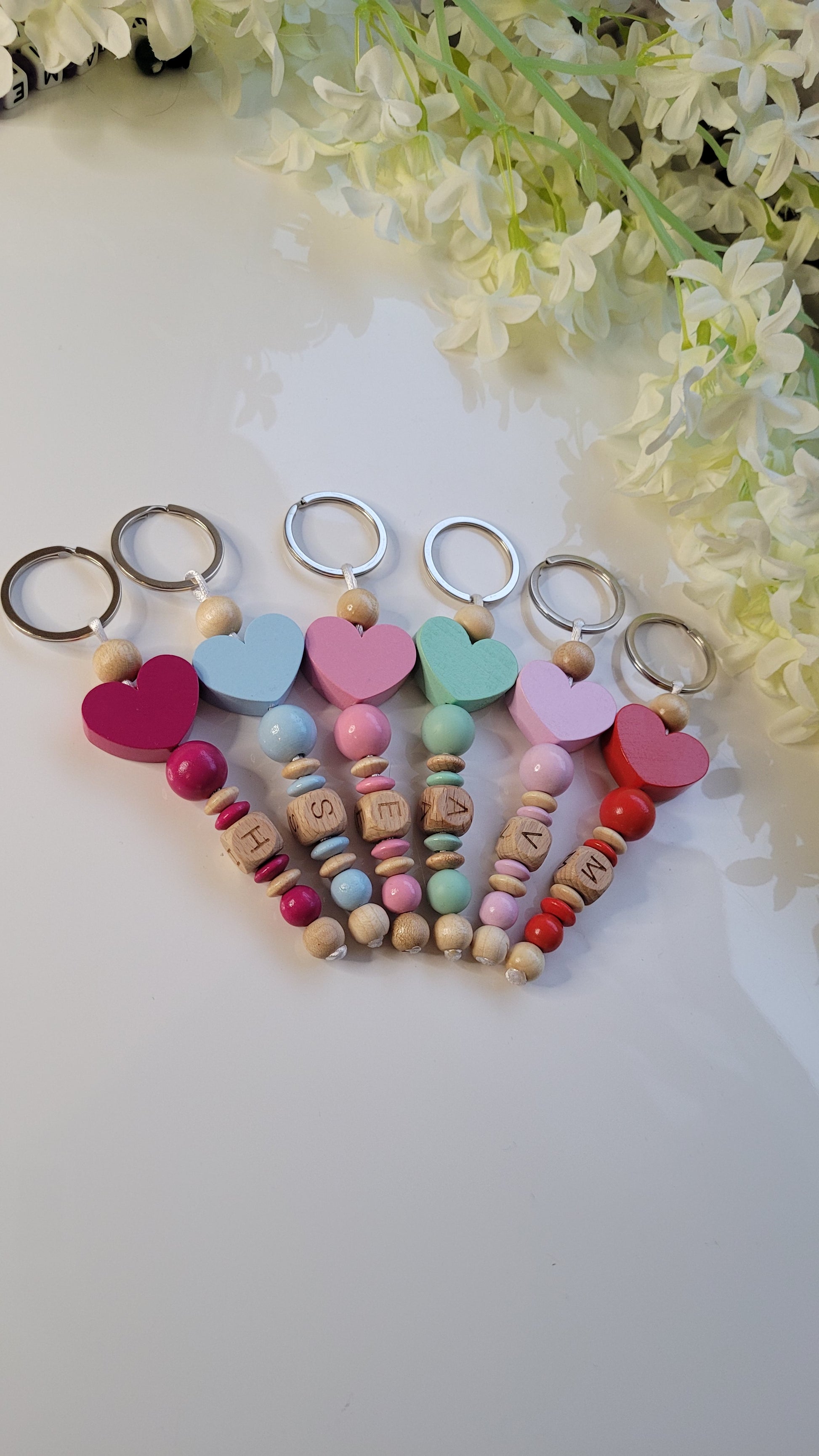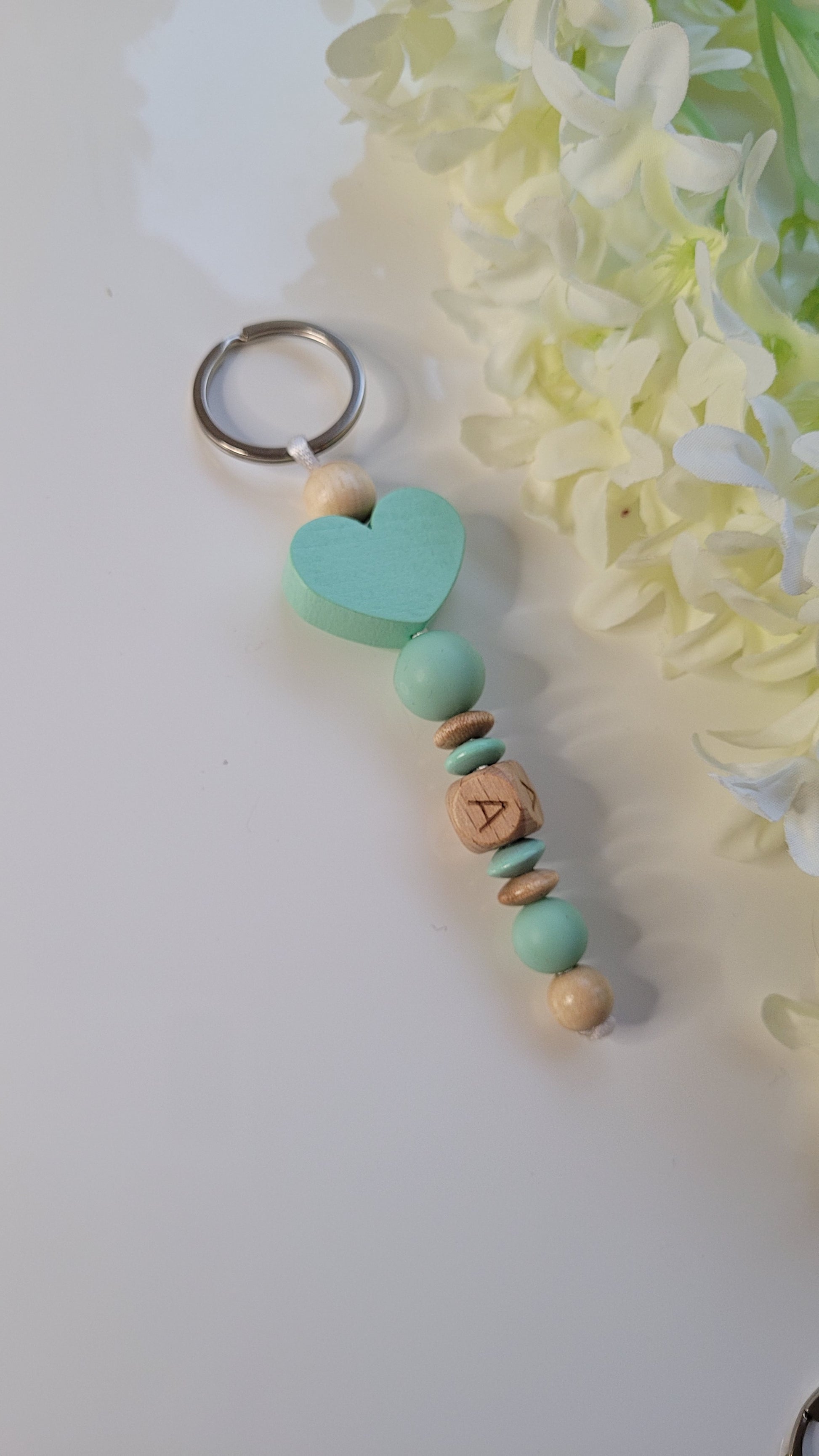 Schlüsselanhänger Big Love aus Holzperlen mit deinem Holzuchstaben der Wahl