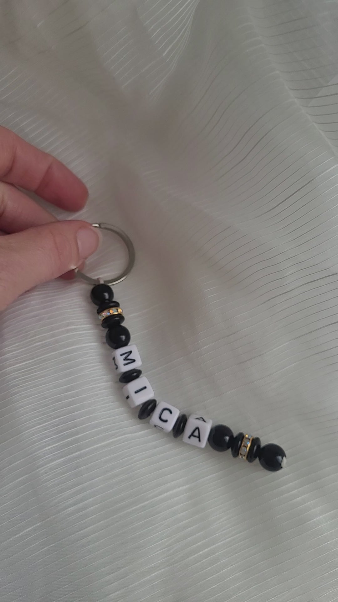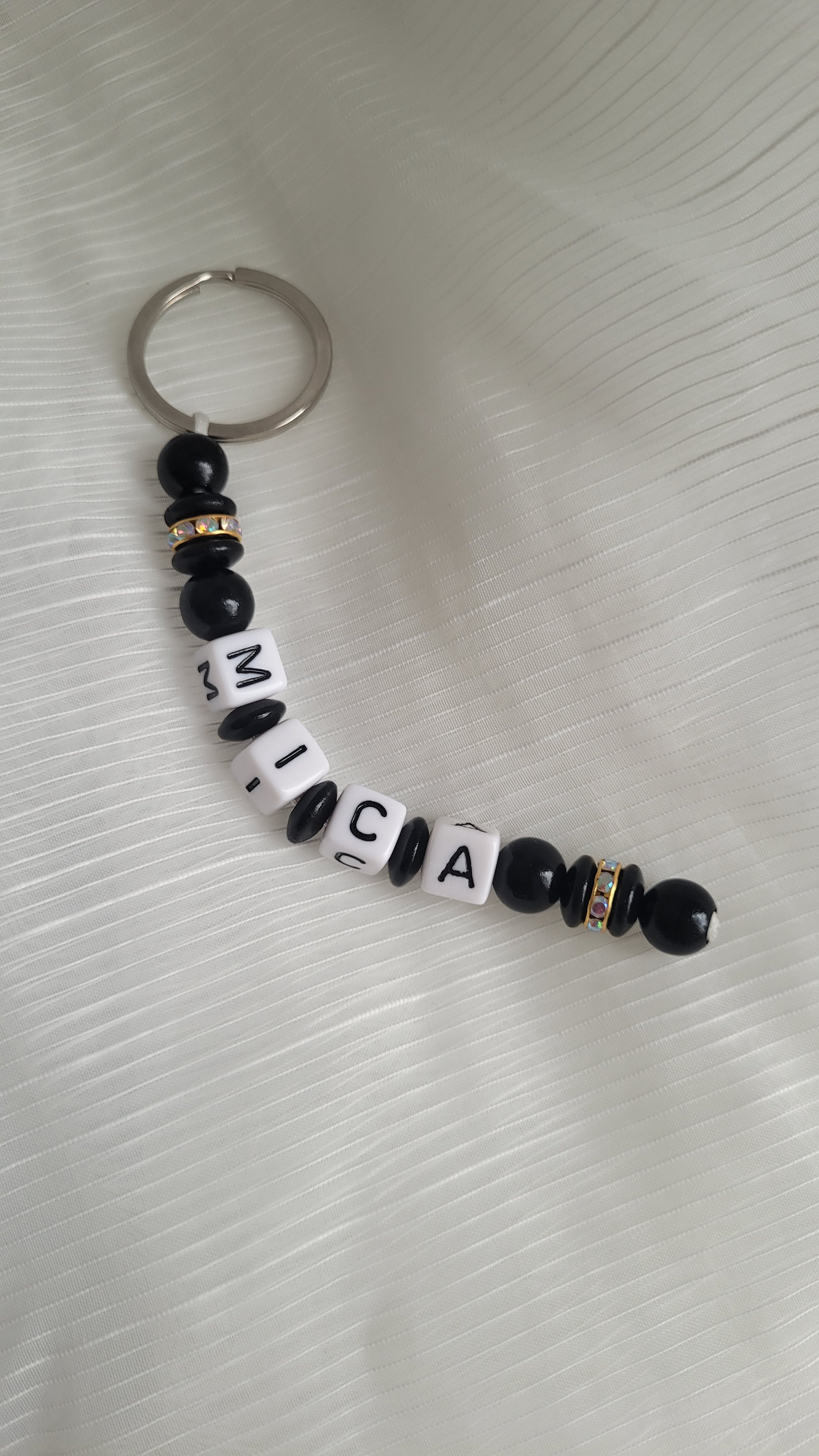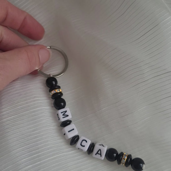 Schlüsselanhänger mit Namen Sternchen schwarz gold glitzer