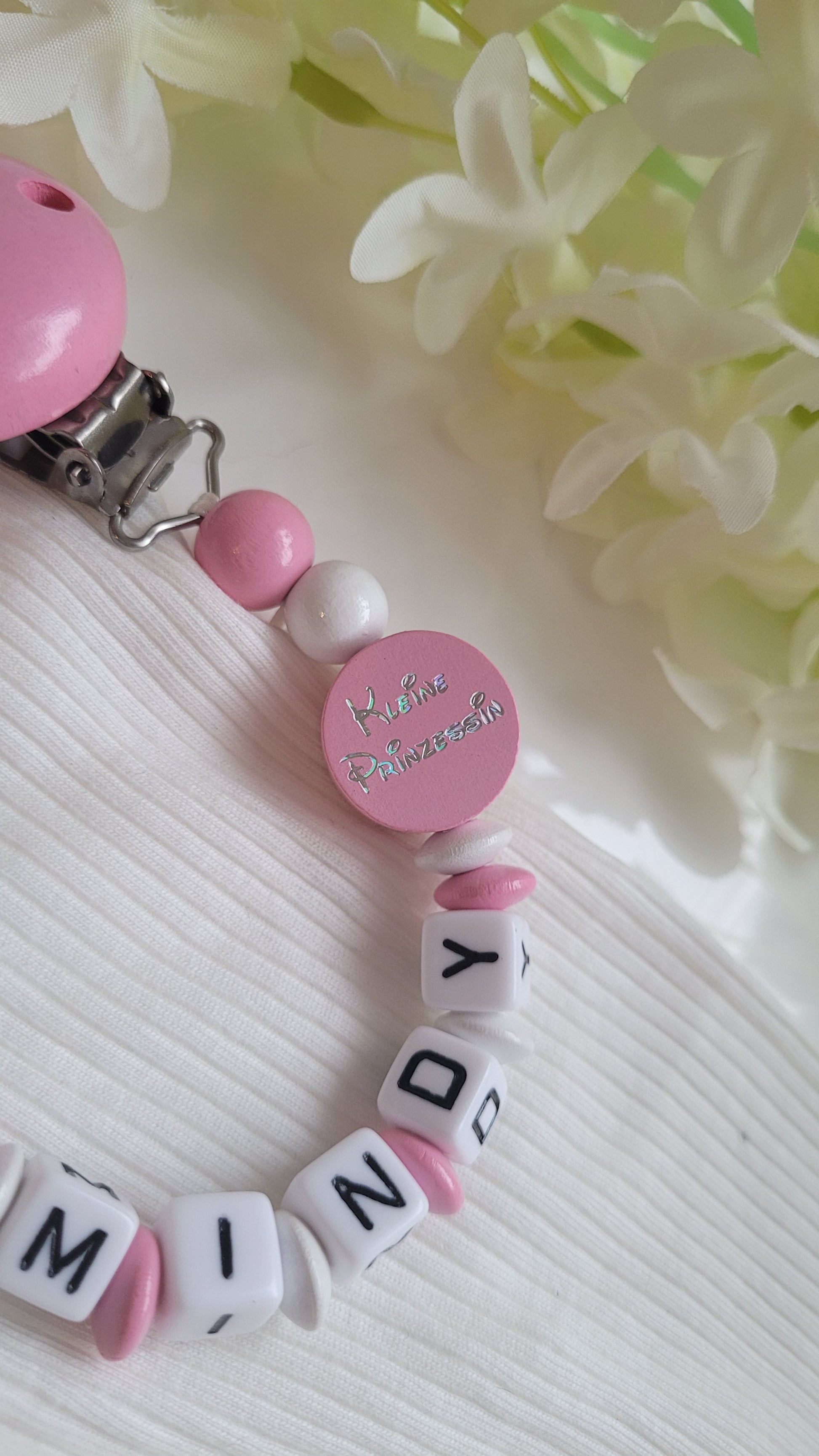 Wir fertigen in Handarbeit Ihre personalisierte Schnullerkette.